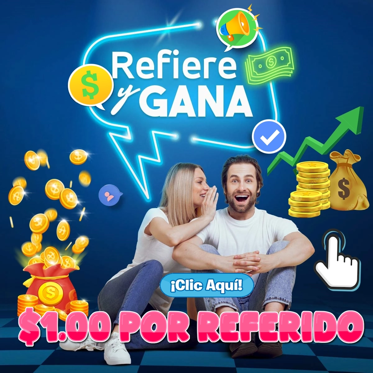 Por cada nuevo usuario que refieras y se registre con tu link único estarás recibiendo una comisión de $1.00 usd por usuario.