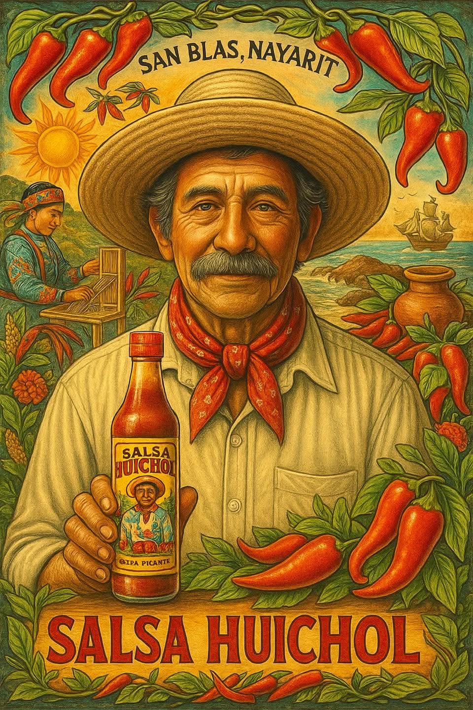 Con chiles secos, vinagre y una mezcla secreta de especias, Don Roberto elaboró su primera salsa artesanal en casa. No tenía idea de que aquel frasco humilde se convertiría en un ícono nacional, conocido por su sabor único y por representar la tradición huichol.